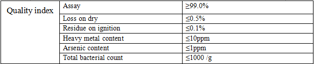 White crystalline powder; Soluble in water, slightly soluble in alcohol, almost insoluble in ether, acetone and chloroform.